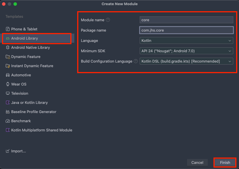예시 하나로 안드로이드 스튜디오에서 core 모듈(공통 모듈) 만드는 방법을 간단히 정리해보겠습니다.