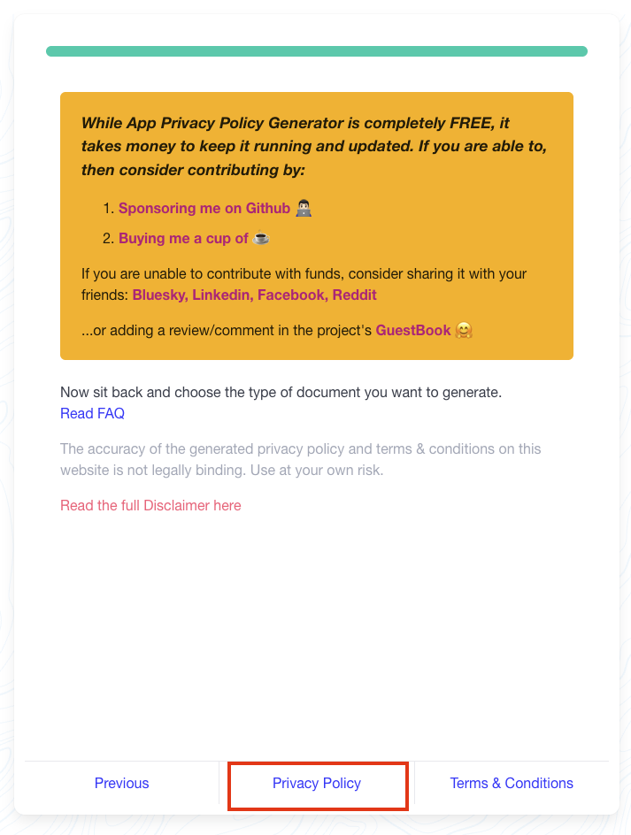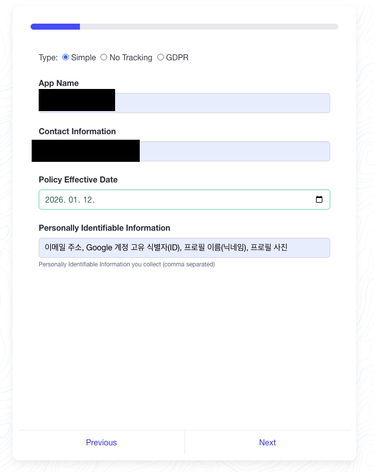 https://app-privacy-policy-generator.firebaseapp.com/ 에 접속