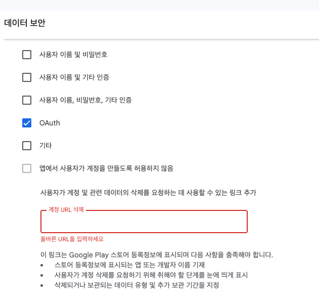 사용자가 계정 및 관련 데이터의 삭제를 요청하는 데 사용할 수 있는 링크는 무슨 링크를 넣어야 하는지 몰라서 찾아봤는데 위에서 만든 개인정보처리지침 링크 넣으면 된다고 해서 일단 넣었다.