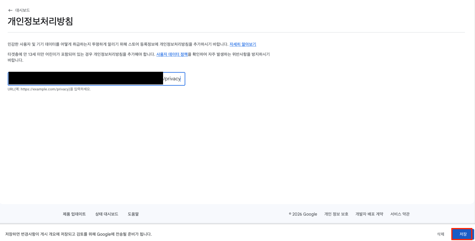 2-1. 개인정보처리방침 보면 URL을 입력하라고 나오는데 없다면 아래 설명 따라서 만들면 된다.