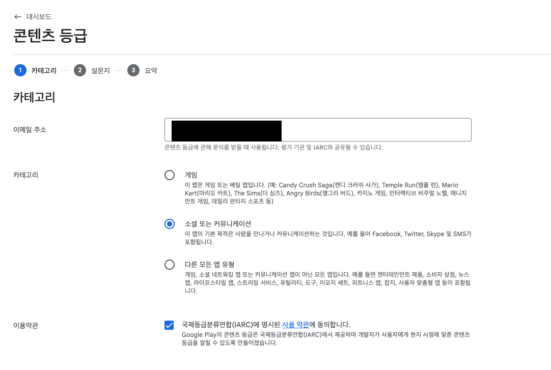 [앱 카테고리 선택 및 연락처 세부정보 제공] 설정하기